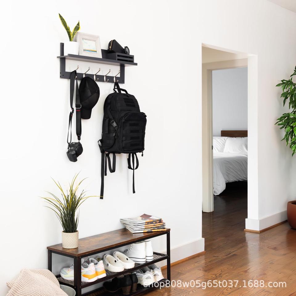 Solid Wood Wall Mounted Storage Rack With Hooks For Entryway Living Room Bedroom Coat Key Organizer Retro Color 2 Layer