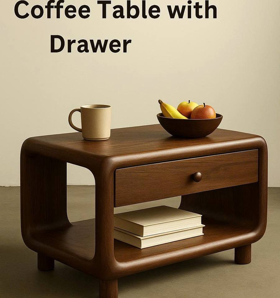 Solid Wooden Coffee Table With Drawer Sculptural Live Edge Wood Center Table Handmade Natural Wood Statement Table Home Decor