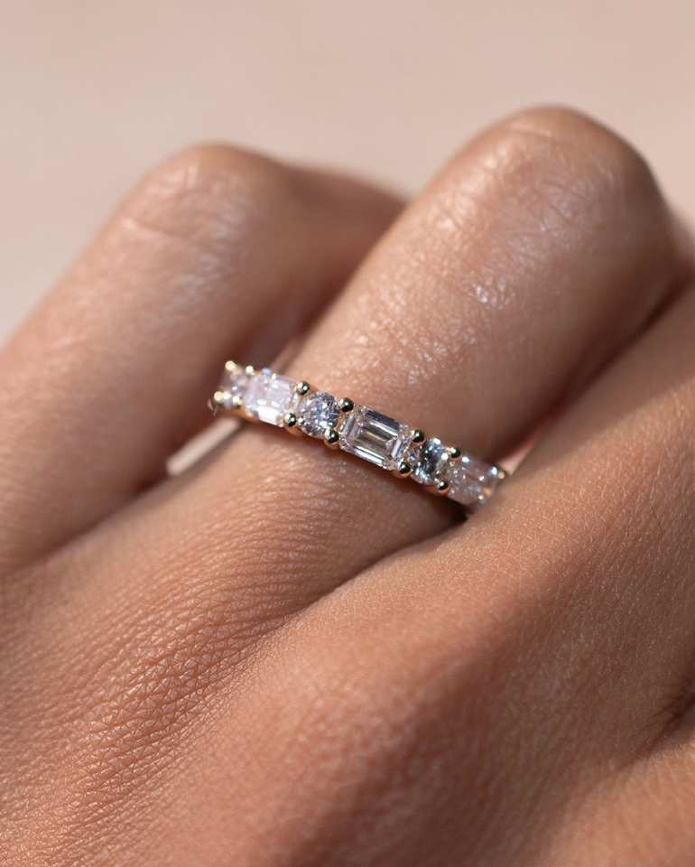 Solid Yellow Gold Emerald Cut Moissanite Wedding Band 14k Half Eternity Stacking Ring for Women Gemstone Rings Matching Band