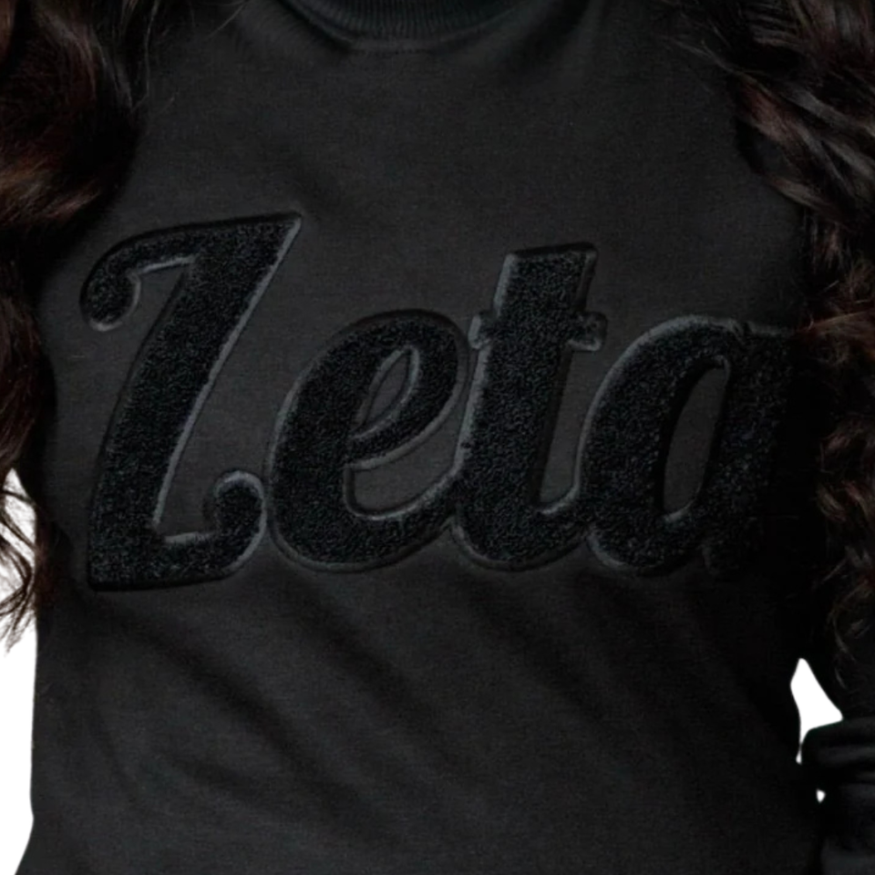 Solid Zeta Chenille Sweatshirt Cotton Fleece Embroidered Greek Sorority Zeta Phi Beta Blue Pullover Crewneck for Women