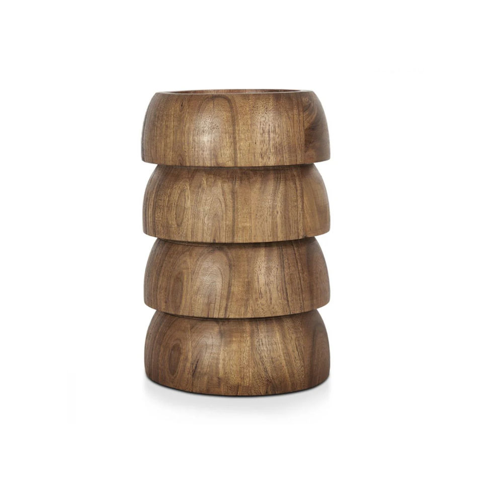 Solid acacia wood candle holder with double dome design rustic brown decorative pillar stand for modern home decor