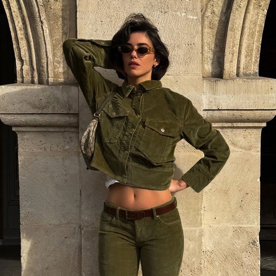 Solid color corduroy lapel single-breasted open-front pocket loose long-sleeved coat trendy casual basic jacket