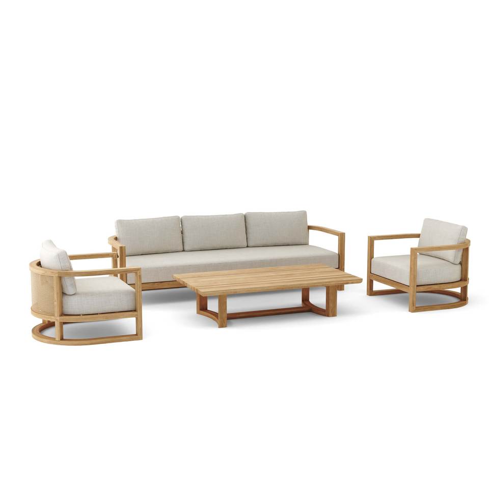 Solid teak wood sofa set in natural color with cushion seat and backrest suitable for outdoor use