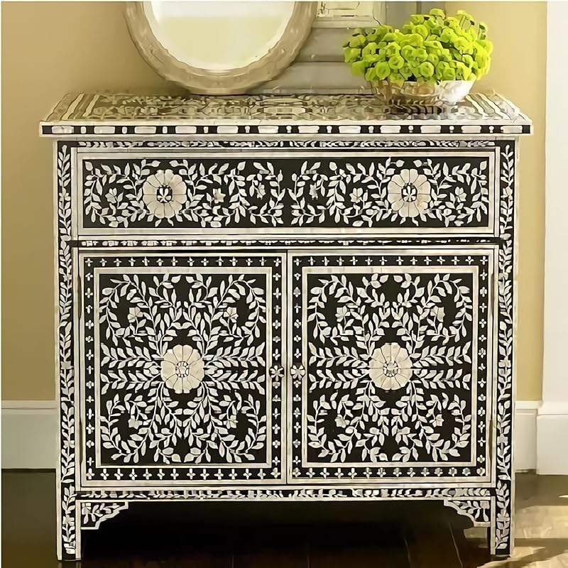 Solid Wood Bone Inlay Console Side Table With Three Drawers Bedside Table Bone Inlay Home Furniture Special for Christmas Decor