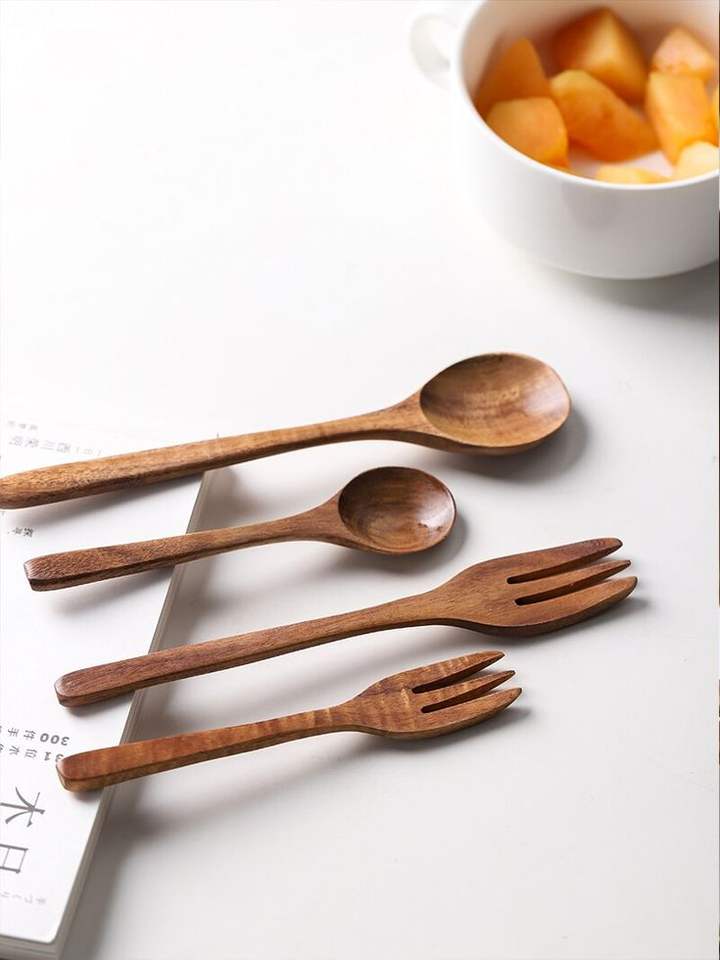Solid wooden cutlery set with premium design and reusable durability great for home and travel use