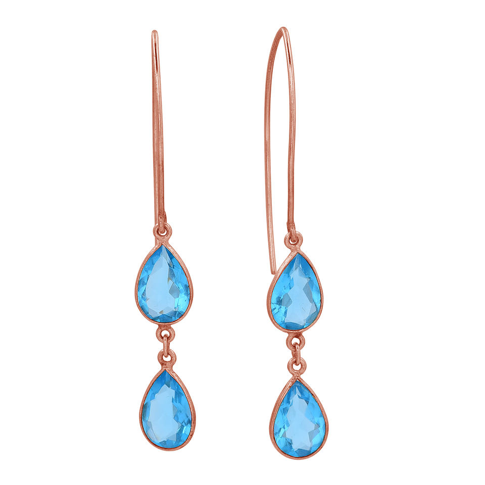 Solid925 Sterling Silver Pear Shape Blue Topaz Gemstone Hook Earring Handmade Earring Gold Plated Jewelry Supplier Casa De Plata