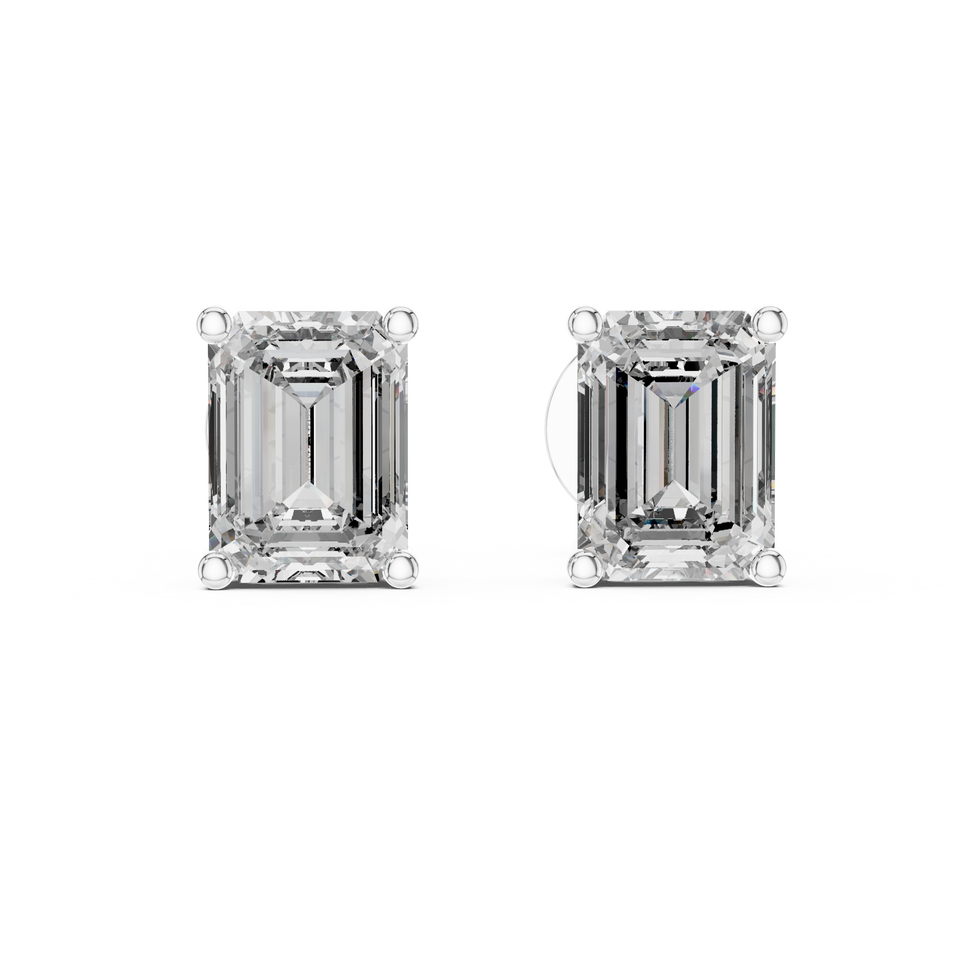 Solitaire 2ct Emerald Cut Lab Grown Diamond Earrings | 925 Silver | EF VS1-2 | 3 Prong Design | Customizable Jewellery Studs
