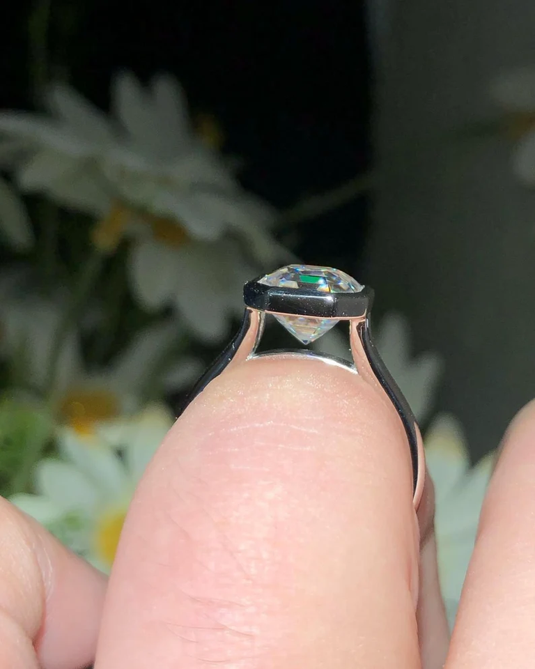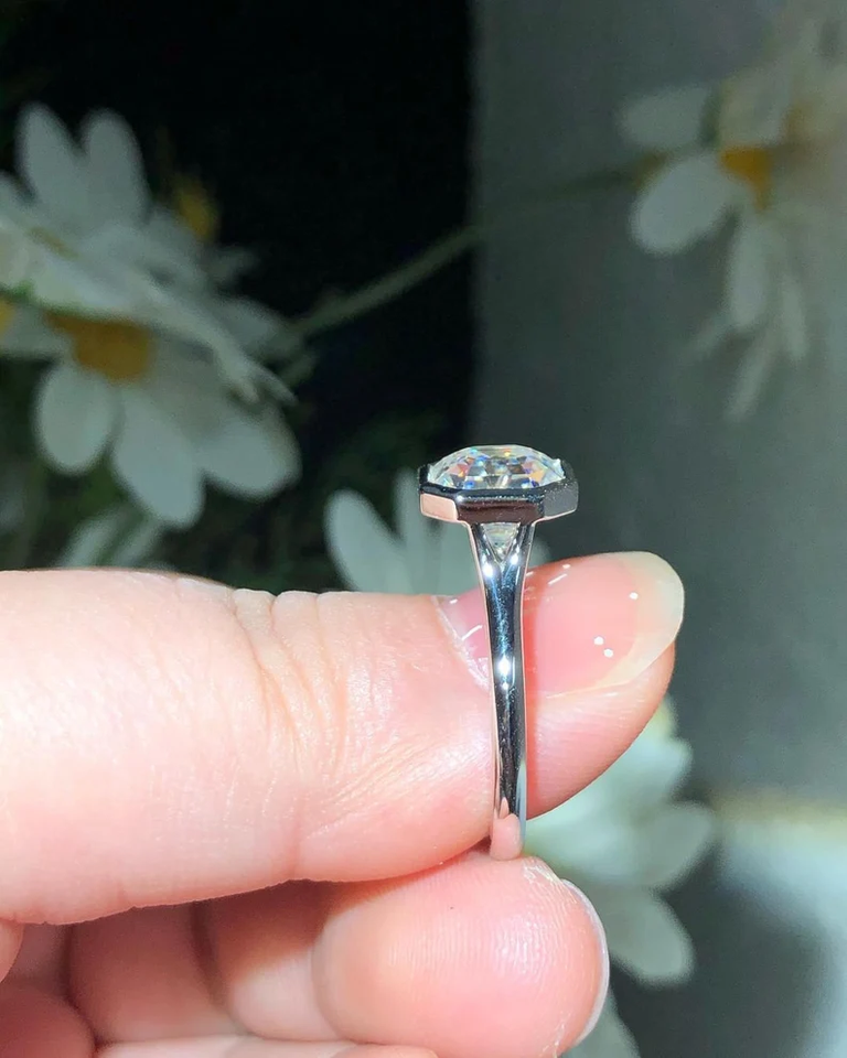Solitaire Bezel Set 925 Sterling Silver Engagement Ring 2.50 Carat VVS1 D Asscher Cut Moissanite Wedding Bridal Fancy Jewelry