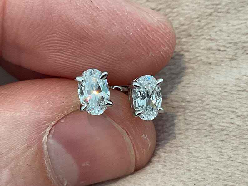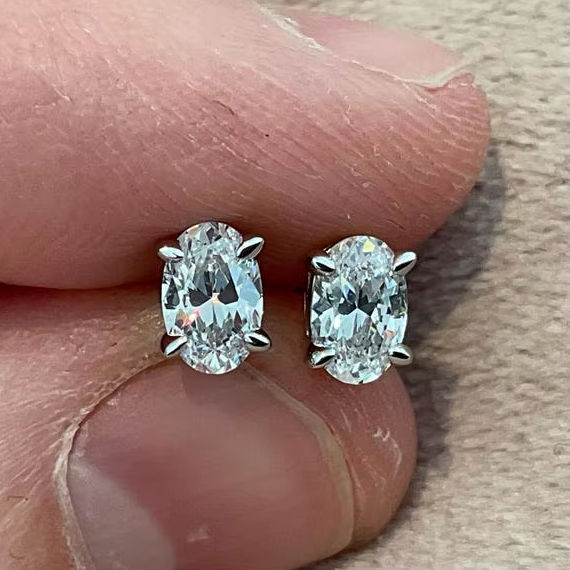 Solitaire Moissanite Oval Cut Diamond Stud Earrings For Womens 925 Sterling Silver Elegant Brides Jewelry for Wedding Gift
