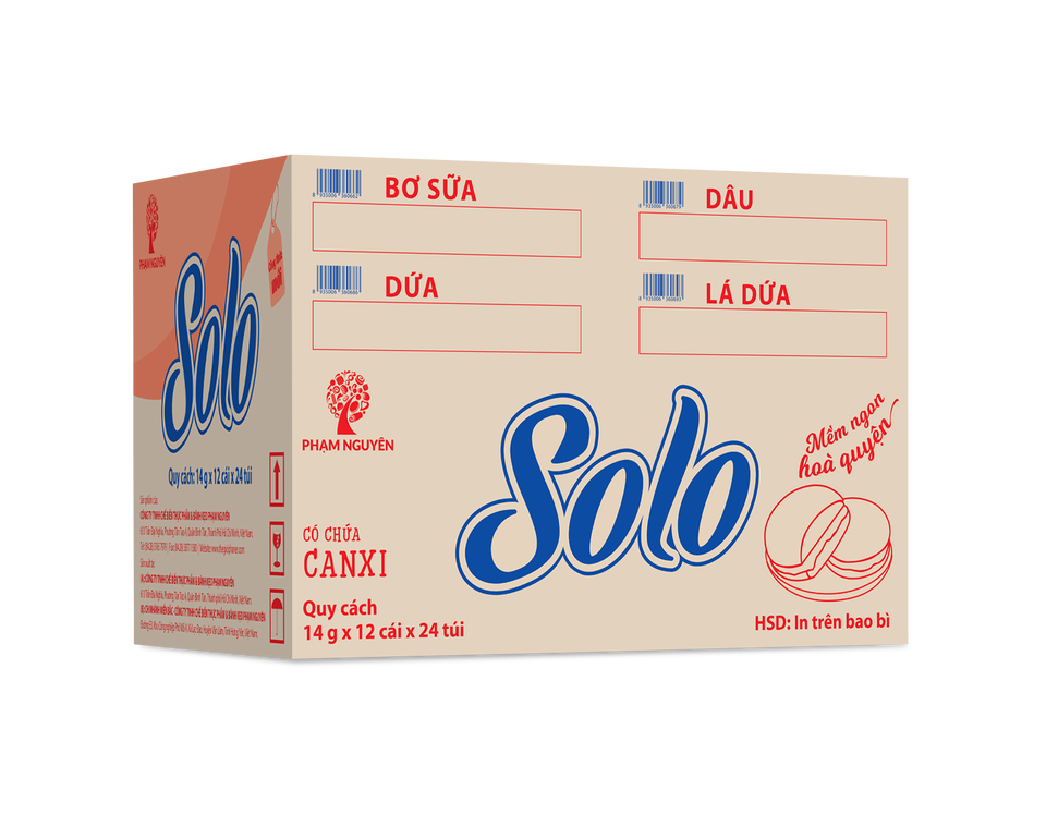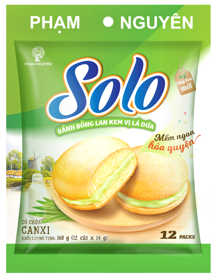 Solo Pandan Cream Cake Bag Packing Vietnam OEM Cookies Biscuit Export Standard Individually Wrapped Convenience Soft Fresh 216g