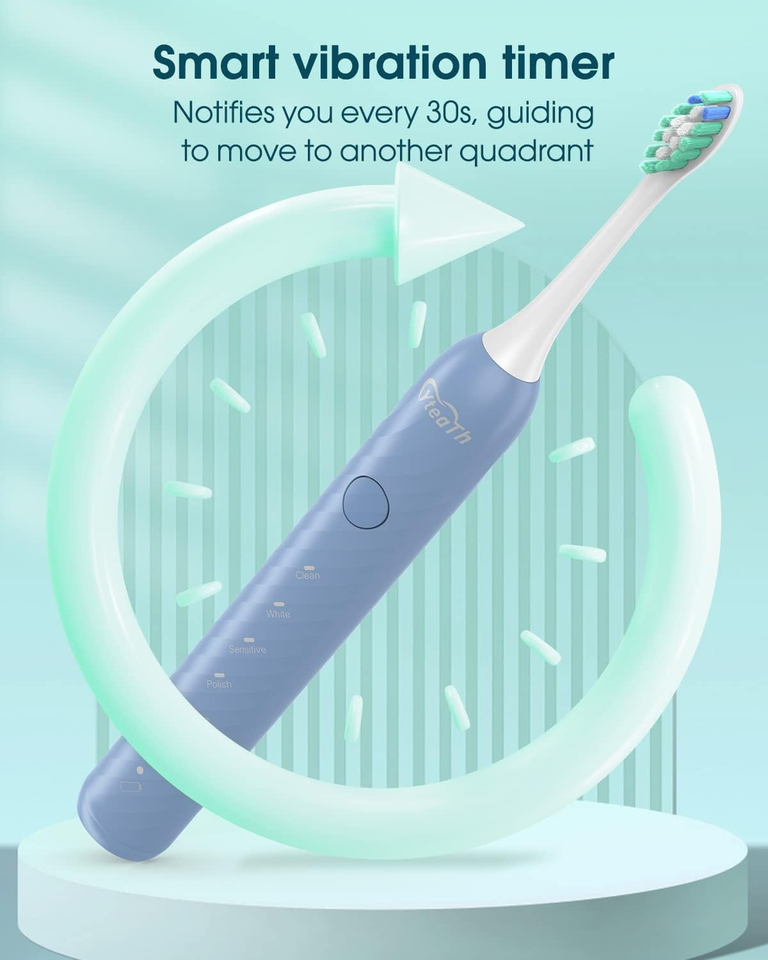 Sonic Electric Toothbrush for Adults 6 Medium Bristle Brush Heads 5 Modes IPX7 Waterproof Teeth Whitening App-Controlled