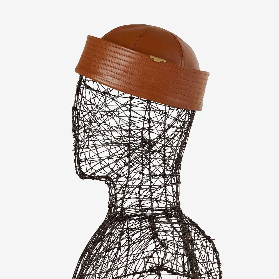 Sophisticated Nappa Leather Women's Sailor Hat Luxury Metallic Accents Glamorous Formal Italian Headwear Classic Cap