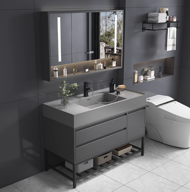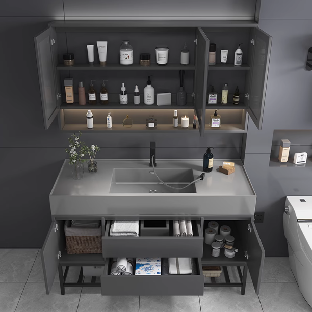 Sophisticated Wall-Mounted Bathroom Cabinet with Integrated Vanity Top and Storage System