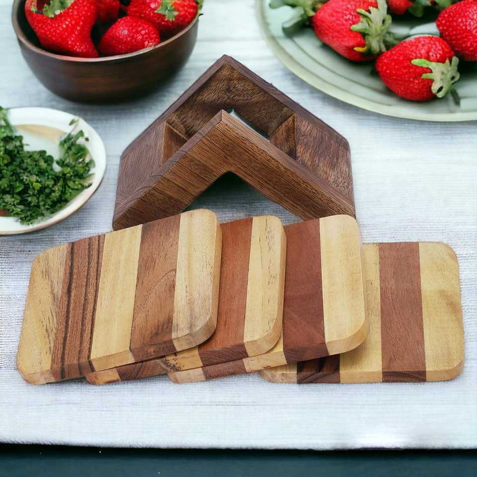 Sophisticated Walnut Wooden Coasters Elegant Handcrafted Mat/Pad Set for Home Decor and Table Decoration