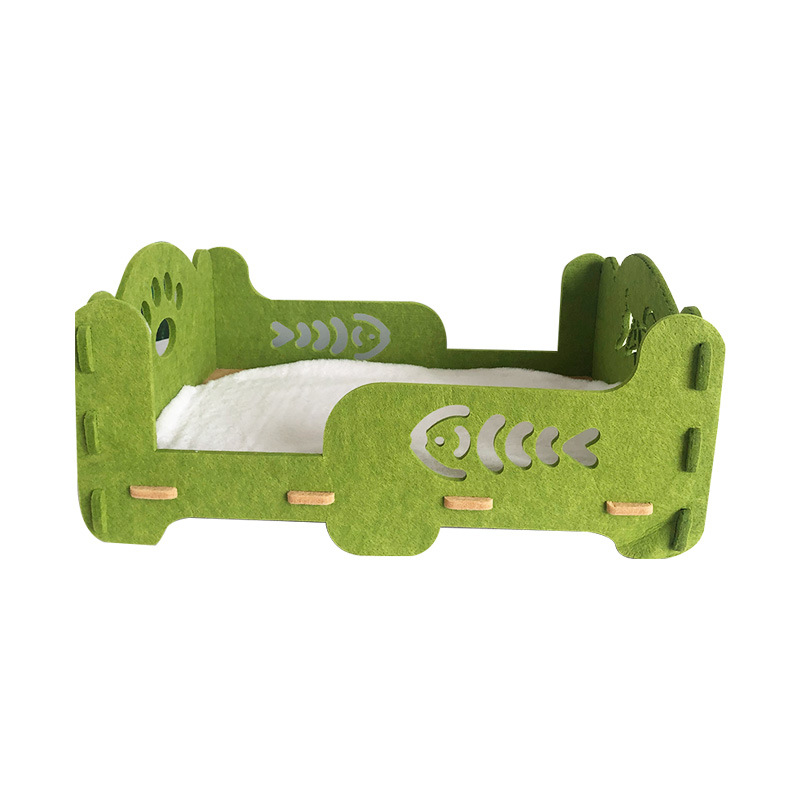 Soundproof Wool Cat Bed Soft Sided Foldable Eco-Friendly Removable Washable Comfortable Anti Slip Space Saving Cute Cat Pattern