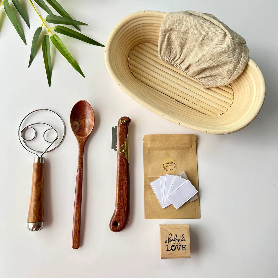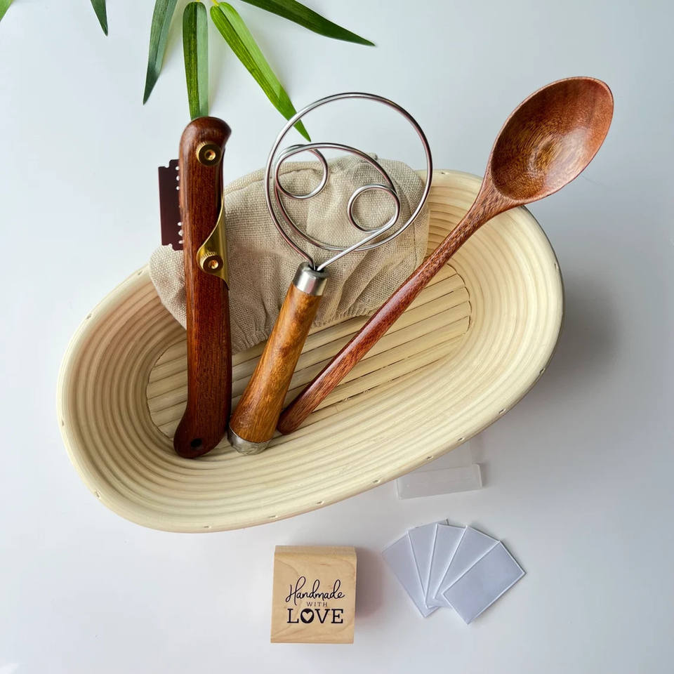 Sourdough Starter Kit 10 Pcs Rattan for Banneton Set Oval 10 Inch Liner Whisk Blades Lame Spoon 9 Inch Starter Kit Sourdough
