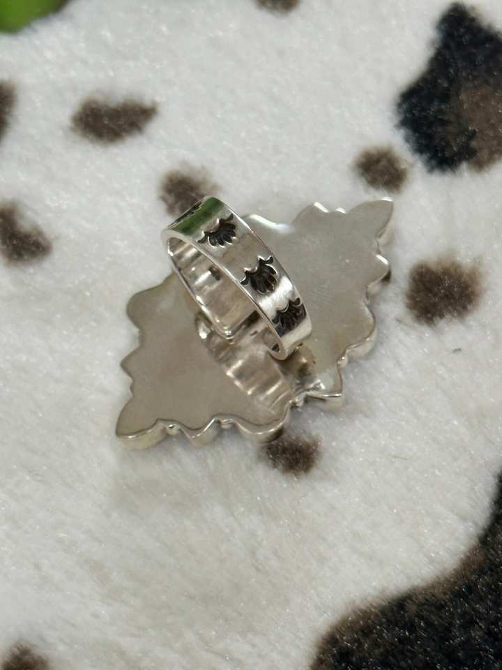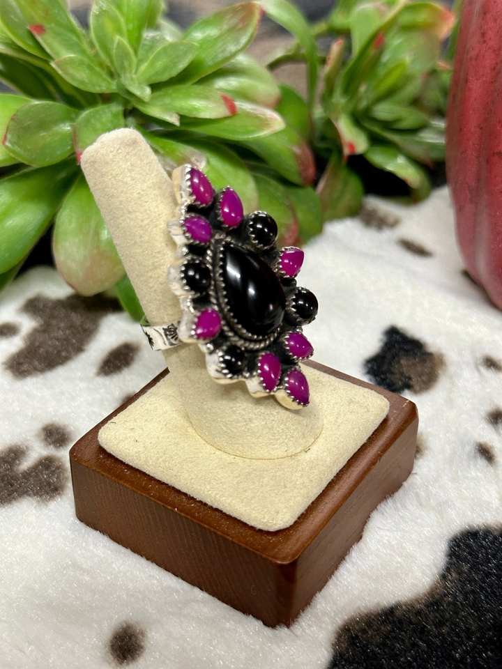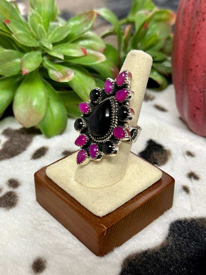 Southwest Vintage Handmade Adjustable Sterling Silver Ring Multi-Stone Cluster Oval Cut Natural Stone Bezel Set for Weddings