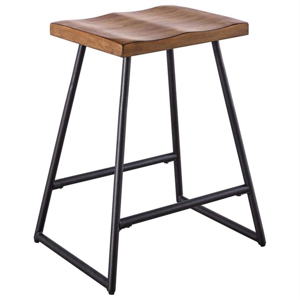 Space Efficient Wooden Iron Stool Suitable For Compact Kitchens Cafes And Contemporary Living Areas