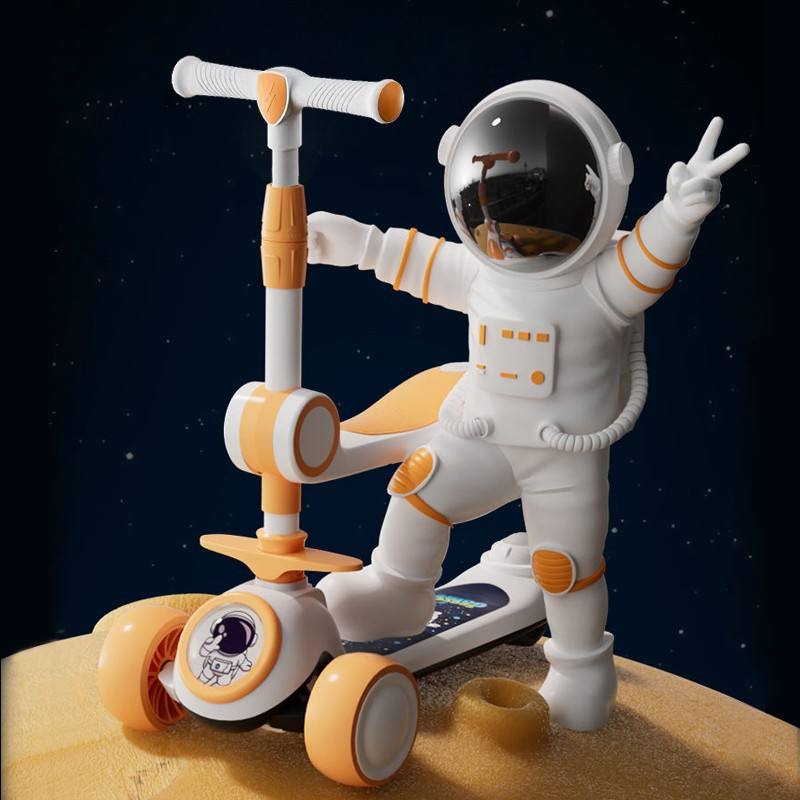 Space Explorer Kids Scooter 3 In 1 With Seat Height Adjustable For Ages 1 6 Years Push Operated Two Wheeled Vehicle