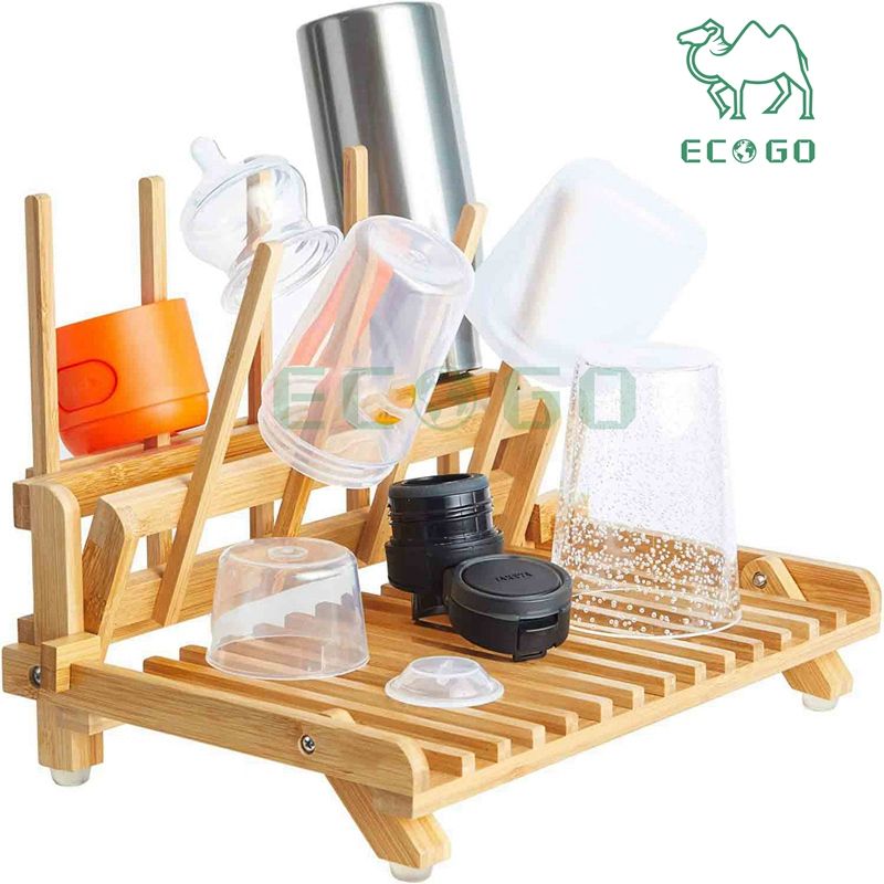 Space Saving Bamboo Drying Rack Counter Wood Folding Drain Rack Collapsible Sink Rack for Baby Bottle Plastic Bag Cup Glass Dish