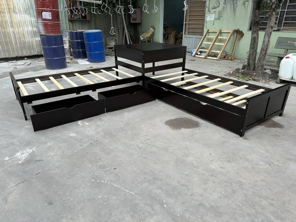 Space-Saving L-Shaped Platform Bed with Trundle and Storage Drawers, Twin Size Wooden Corner Bed Frame for Kids Room
