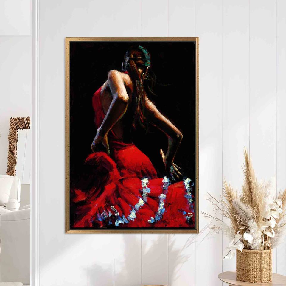 Spain Style Flamenco Dancer Canvas Print - Elegant Wall Art,Gold Framed