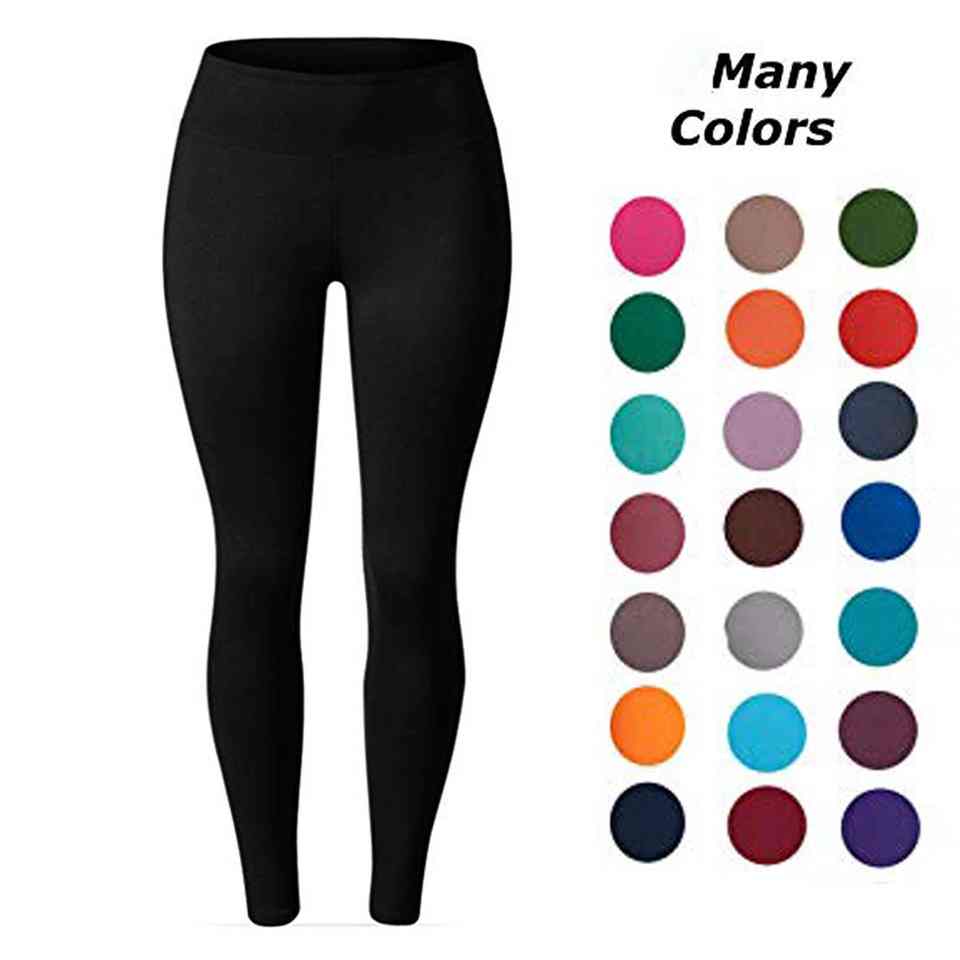 Spandex/Nylon High Waist Four-Way Stretch Quick Dry Breathable Yoga Leggings Soft Double Brushed Ankle-Length Black Solid Color