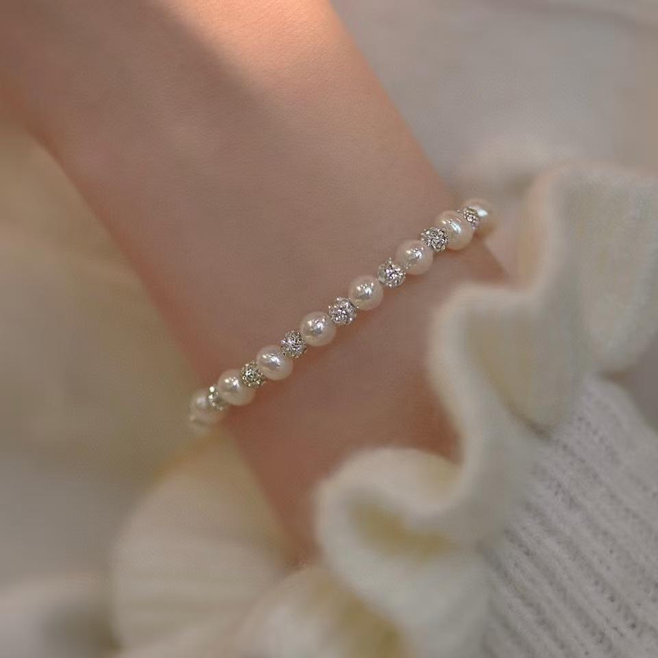 Sparkling 5-6mm Natural Freshwater Pearl Bracelet Adjustable Length Crystal Bangle Exquisite Beautiful Appearance Gift Planet
