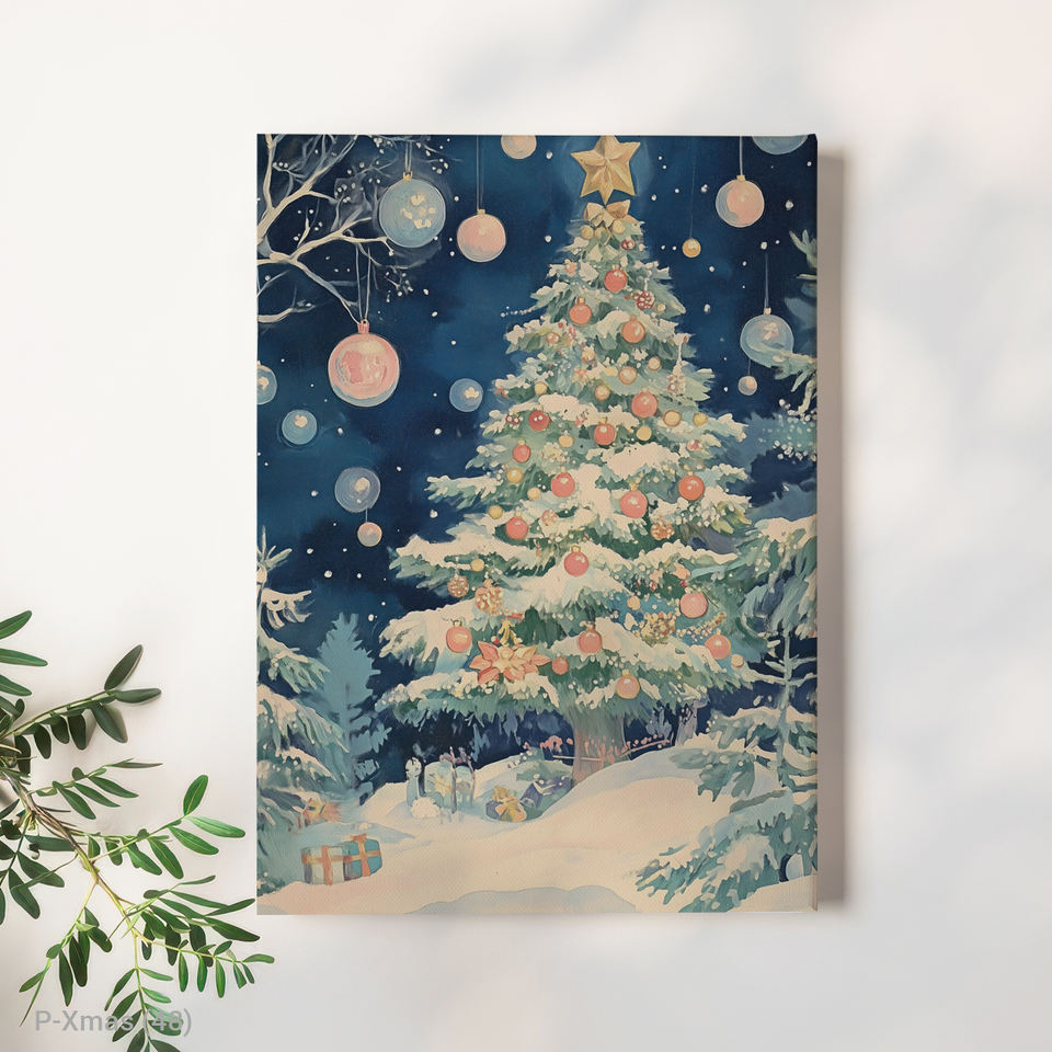 Sparkling Modern Christmas Tree in Snowy Night Canvas Wall Art with Wood Frame-Bulk Order