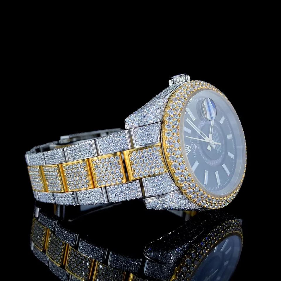 Sparkling Moissanite Diamond 41MM Luxury Automatic Stainless Steel Watch High Quality Glass Dial Rapper Fashion Business Jewelry
