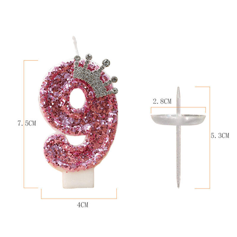 Sparkling Pink Number Happy Birthday Candle With Crown Handmade Paraffin Wax Factory Direct Cake Decoration Candle
