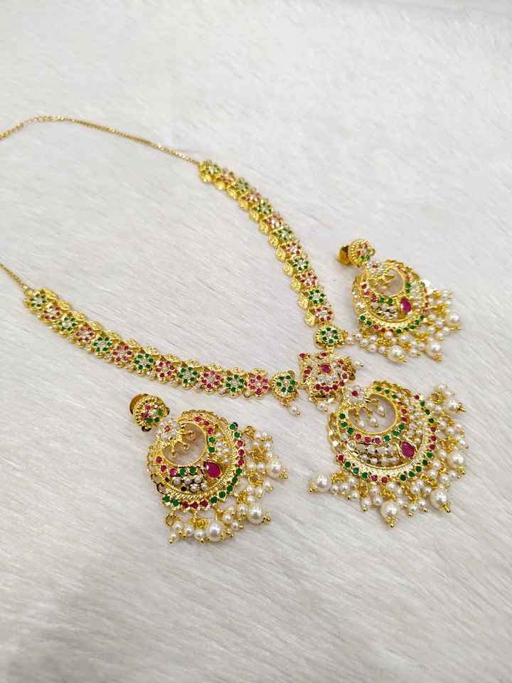 Sparkling Premium AD Indian Brass Jewellery Set for Women Wedding Festivals Special Events Necklace and Earrings Combo