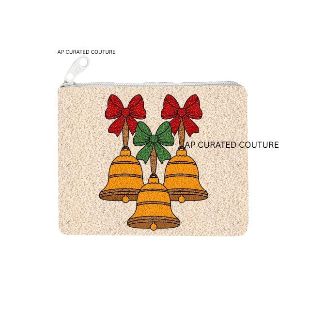 Sparkling Santa Christmas Tree Beaded Coin Purse Festive Holiday Wallet Handcrafted Beads Perfect Xmas Gift Accessory Durable