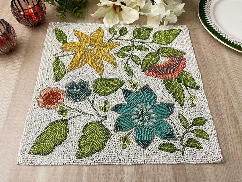 Sparkling Silver Classic Eco-Friendly Beaded Coaster Set 6 Pieces Round Glass Beads Table Placemats
