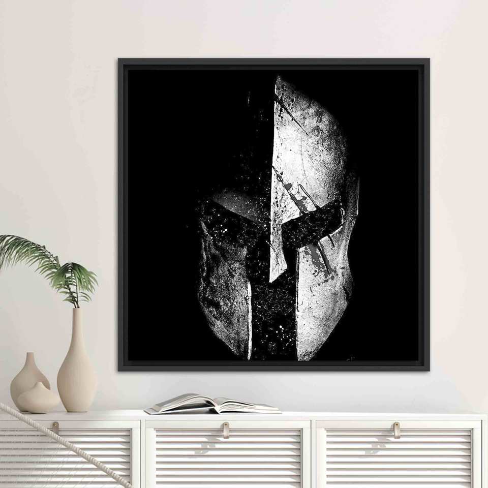 Spartan Helmet Molon Labe Printed Canvas Art Poster - Modern, Trendy Wall Decor,Black Framed
