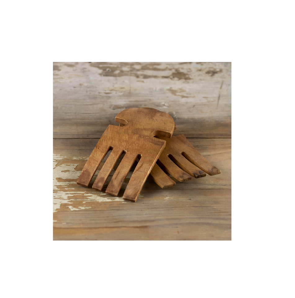 Special Design Natural Mix Food Bamboo Wooden Salad Hands Server Set of 2 Peace Designer Look Top Selling Product