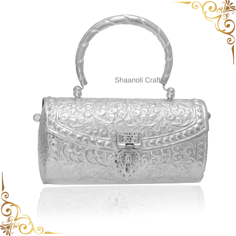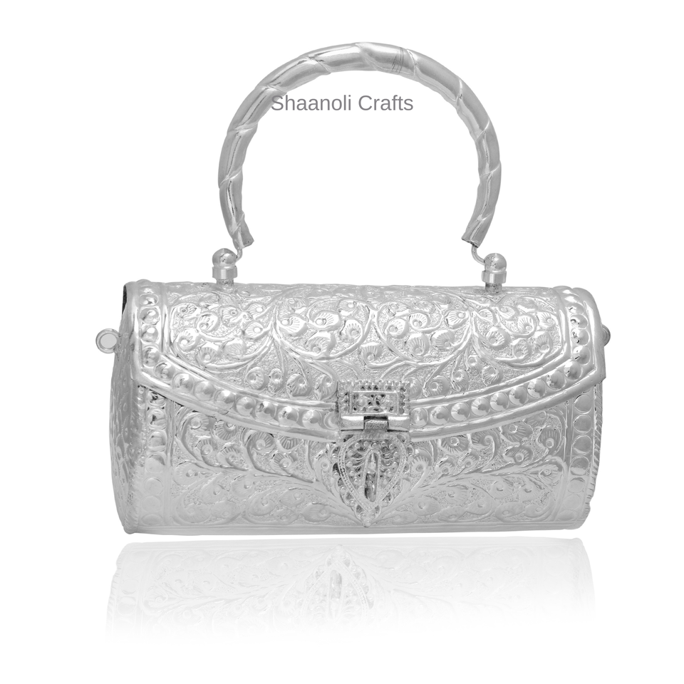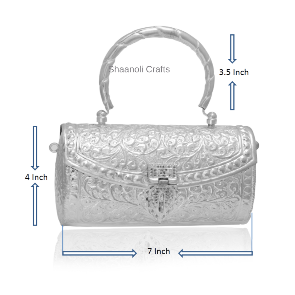 Special Occasion High Quality Handmade Ethnic Vintage Brass Metal Oxidized Silver Clutch Purse Metallic Sling Wedding Favor