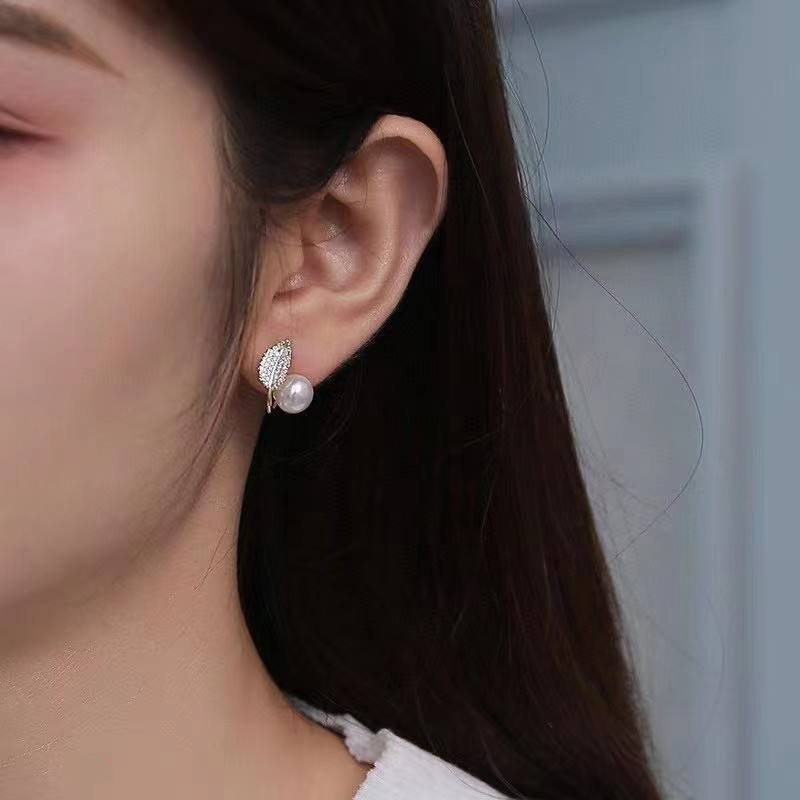 Special Offer 8-9mm Freshwater Pearl Crystal Earrings Exquisite Elegant Leaf Design 14k Gold Silver Needle Color Preserved
