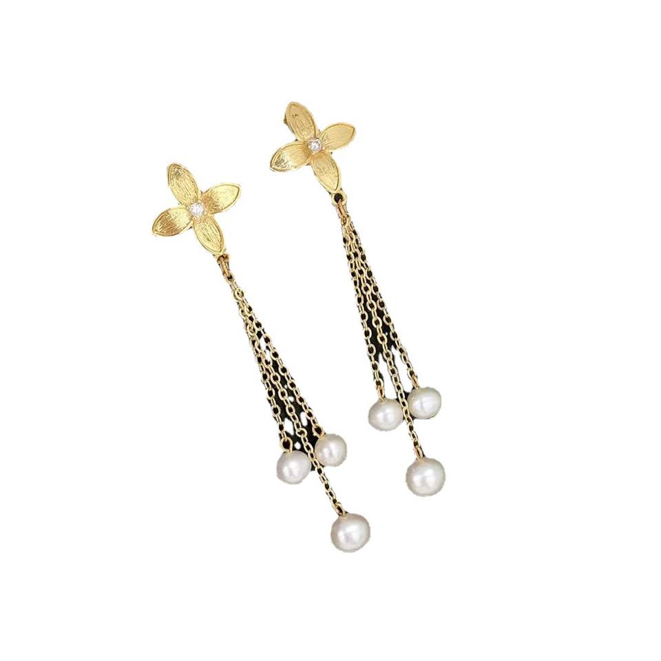 Special Offer Gold-Plated Four Leaf Clover Long Tassel Earrings 4-7 Freshwater Pearl S925 Silver Ear Needles Fine Dangle Design