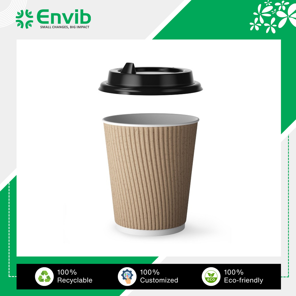 ENVIB Triple Wall Ripple Paper Cup 12oz Heat Resistant for Hot Drinks Customizable Logo & Design Indian Supplier
