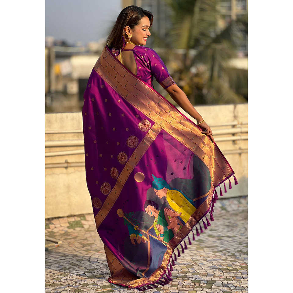 Elite Weaves Special Paithani Silk Saree with Wine Zari Woven Gudi for Gudi Padwa Indian & Pakistani Clothing