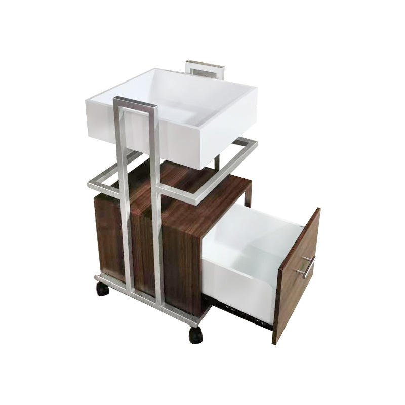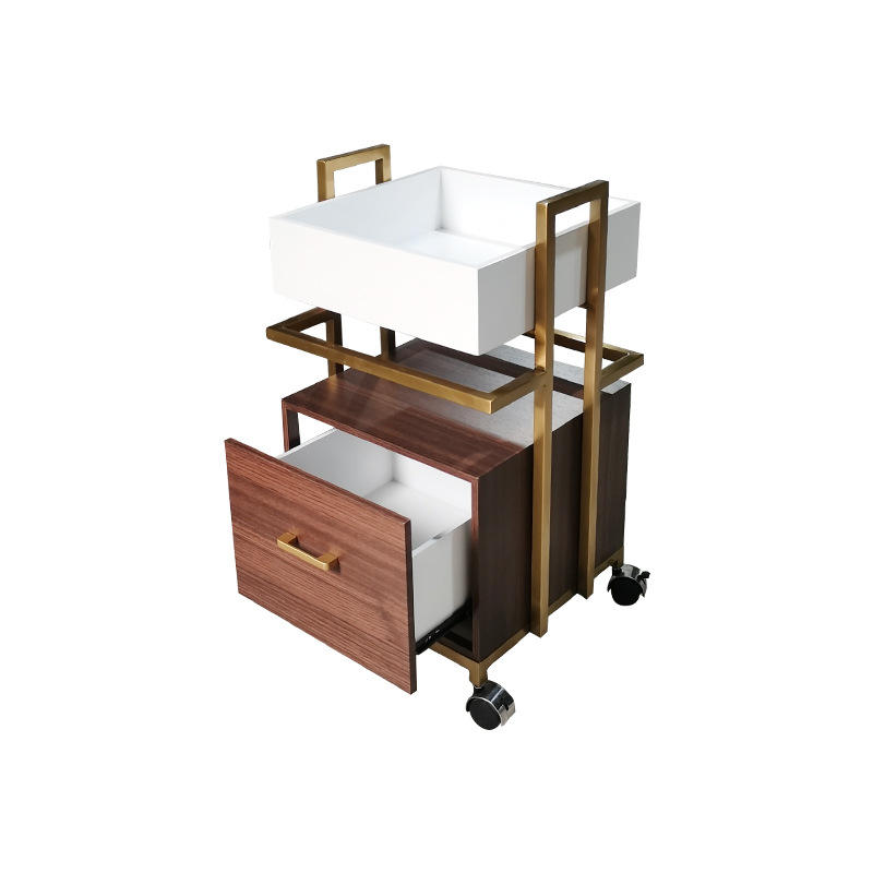 Modern Wood Barber Shop Salon Trolley Storage Rack with 4-Wheel Cart for Hair Styling Coloring Tools Haircut Supplies