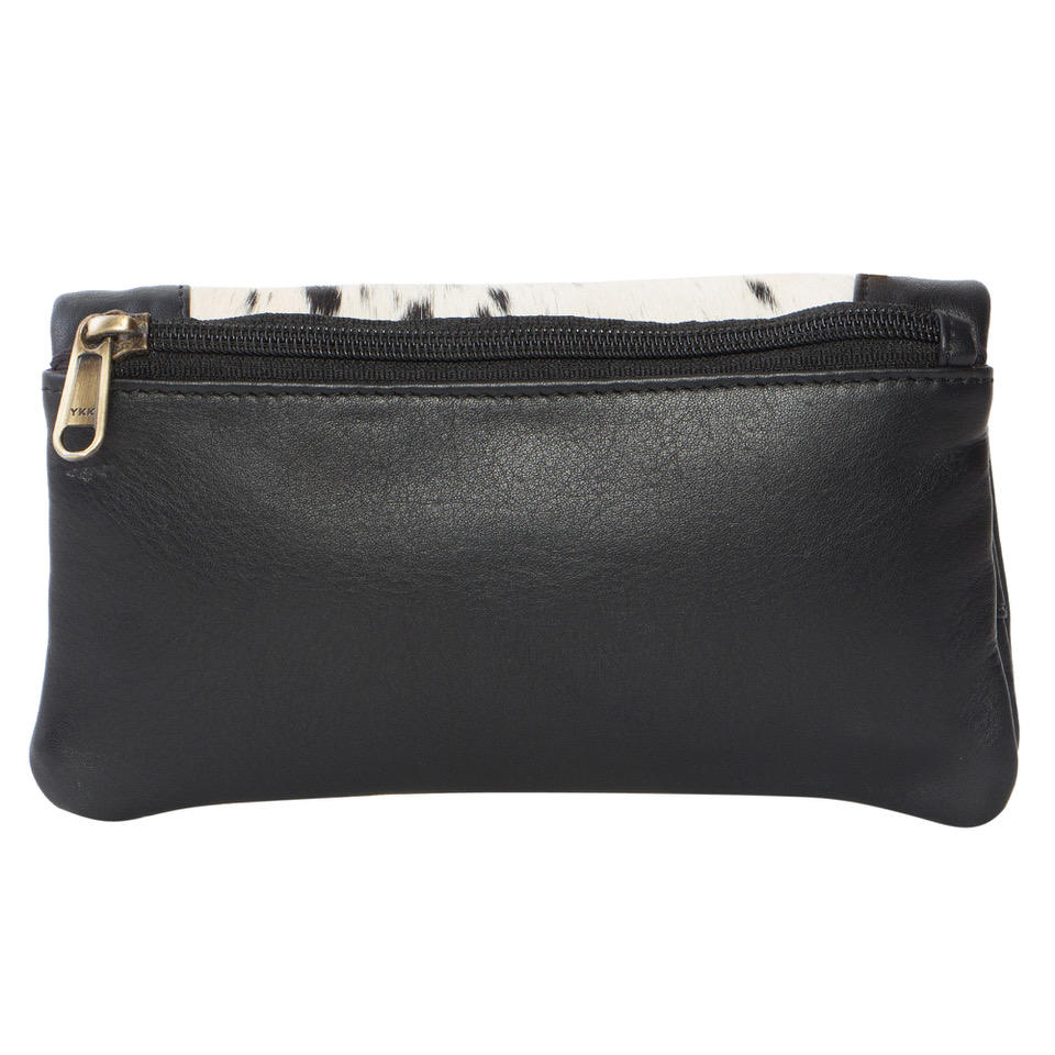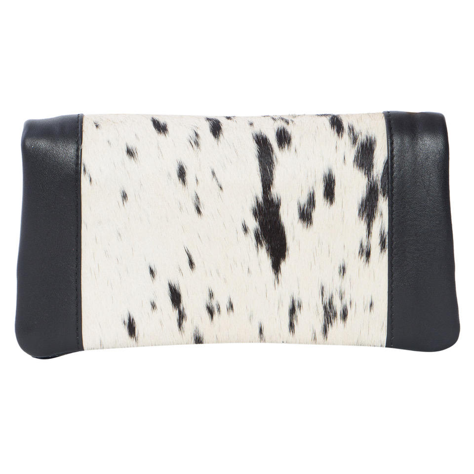 Speckly Custom Logo Zipper Button Wristlet Tassel Soft Fold Wallet Black White Pattern Cowhide Handled Polyester Lining