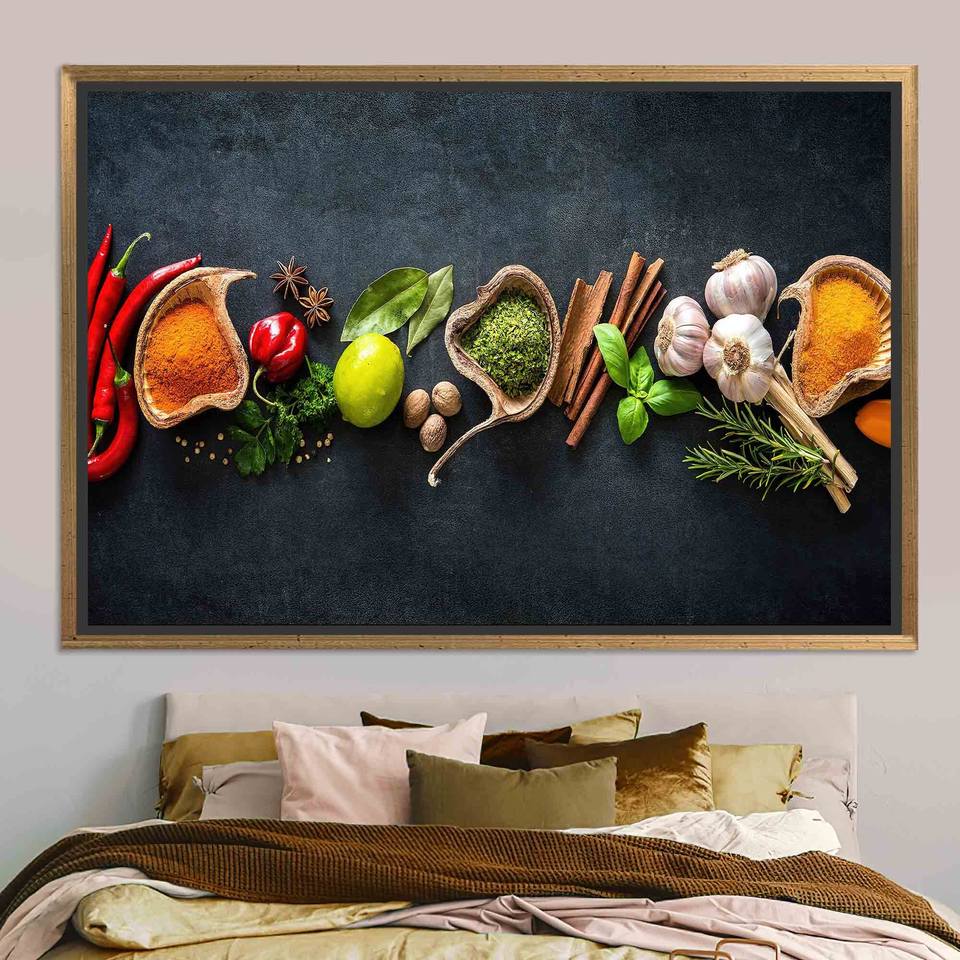 Spice Art Canvas Print: Elegant Kitchen Wall Decor Artwork,GOLD FRAMED CANVAS