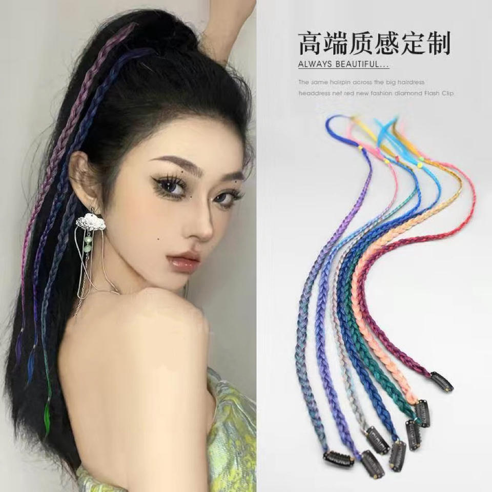 Spicy Y2K Braided Wig 60cm Gradient Colored Braid High Temperature Wire Hair Extensions Ready Made Clip For Jazz Dance
