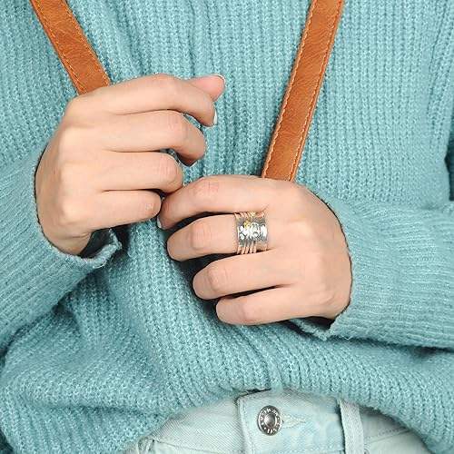 Moonstone Spinner Ring for Women 925 Sterling Silver Moon and Star Design Unisex Bohemia Style Wide Band for Parties Gifts