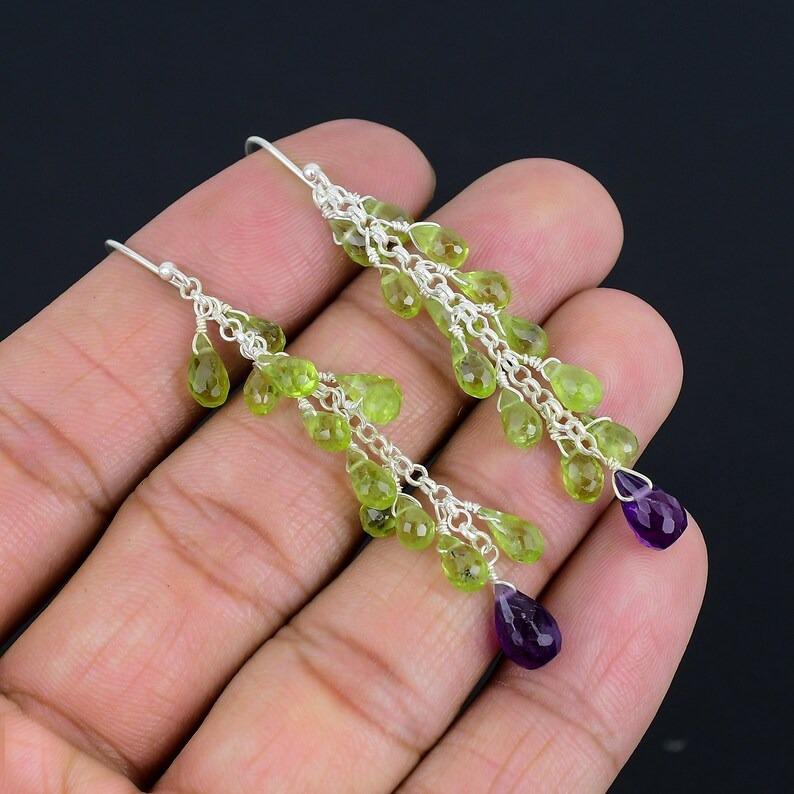 Spinner Peridot Gemstone Girls Simple Earrings 925 Solid Sterling Silver Fashion Earrings Women Girls Earrings Silver Jewelry