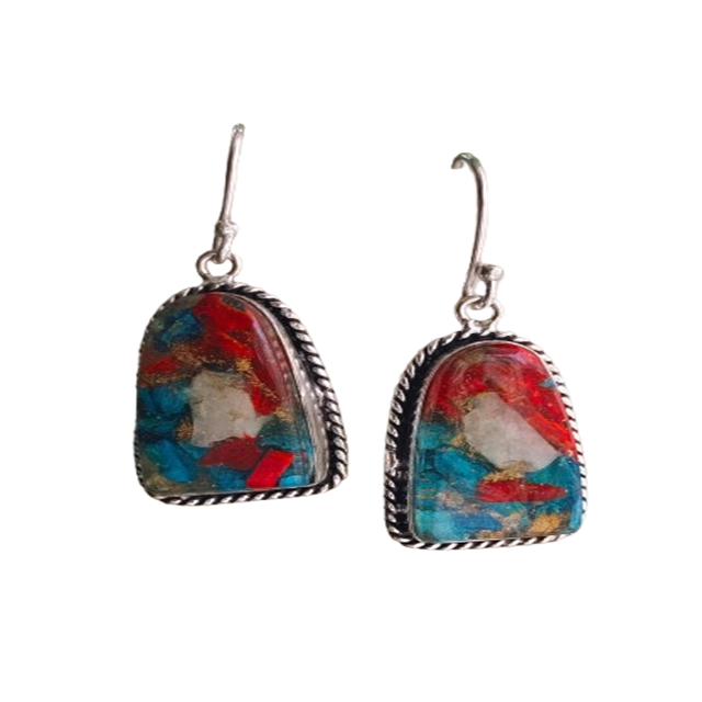 Duplet Earings Crystal Gemstones Carved with Silver Electroplated Engraving Mascot Style Earings