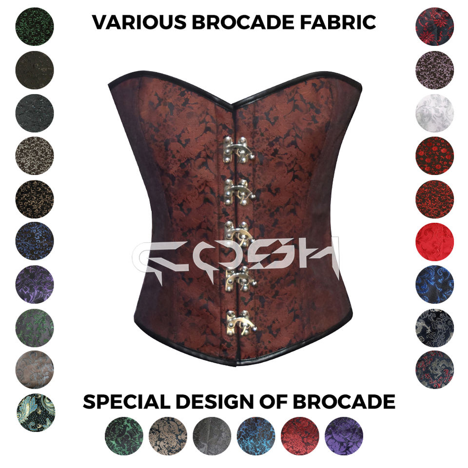 Spiral Boned High Compression Firm Control Brown Brocade Steampunk Corset Top for Cosplay Breathable Slimming 100% Cotton