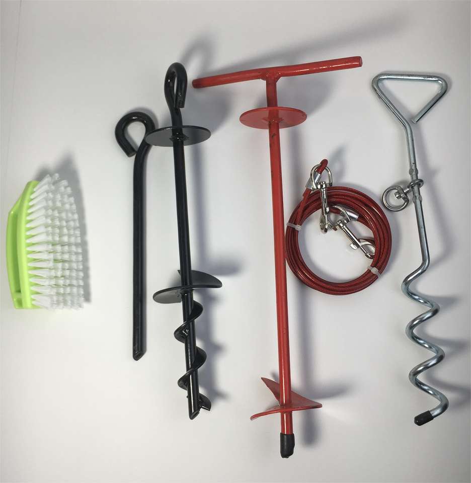 Spiral Ground Screw Earth Anchor Spike Folding Helix Stake Pile with Dog Tie for Trampoline, Swings, Gazebo, Tent